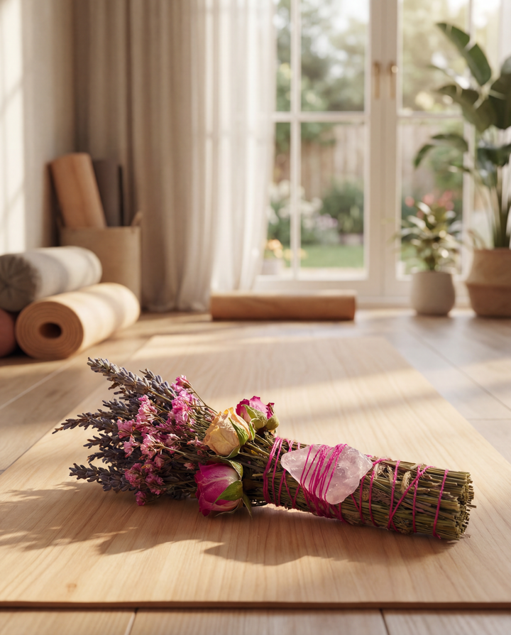 Bring balance, peace, and positive energy into your space with our hand-crafted Rose Quartz, Rosemary, Sage & Lavender Smudge Stick. Thoughtfully bundled to combine ancient cleansing traditions with calming floral energy, this smudge stick is perfect for spiritual rituals, meditation, or everyday energy refresh.